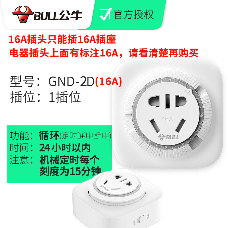 D-2D 16A High power 24-hour timer switch D-2-10A Ordinary plug mechanical timing can be set 24 hours cycle automatic power off (each grid indicates 15 minutes) D-3- mechanical timer can be set within 10 hours countdown power off 2 plug dedicated D-5-10A electronic timing can be set to automatic power off or power up within 10 hours 2 or 3 plug D-1-10A electronic timing can be set every day 20 groups of automatic cycles per week (accurate to minutes)