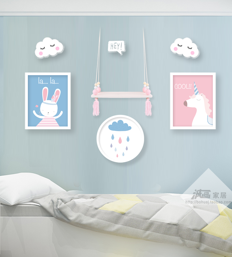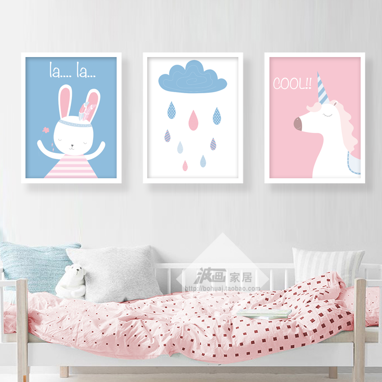 Children's room girl bedroom cute princess room bunny rabbit unicorn cartoon fresco decoration painting