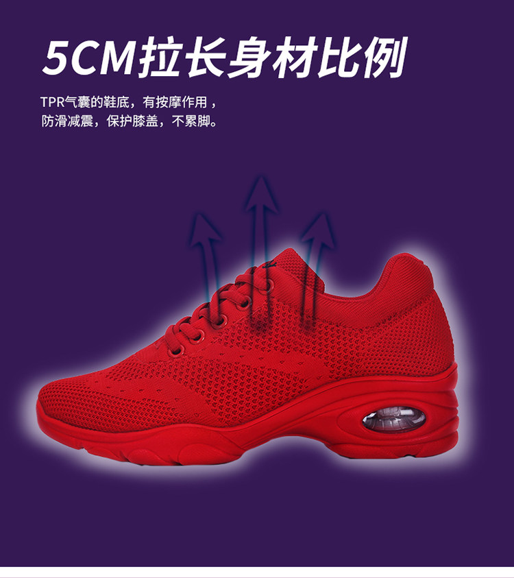 Spring Summer Season Breathable Dance Shoes Adults Jump Square Dancing Women's Shoes New Air Cushion Softbottom Red Ghost Walking Dance Shoes