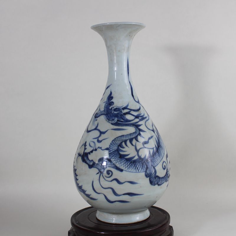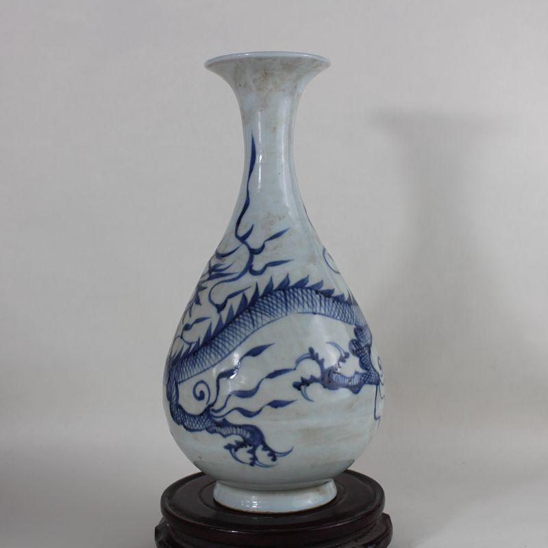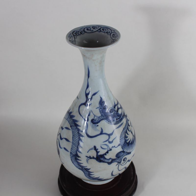 Jingdezhen Antique porcelain Imitation Yuan dynasty blue and white single dragon jade pot spring vase Antique collection Ornament vase