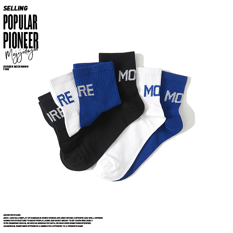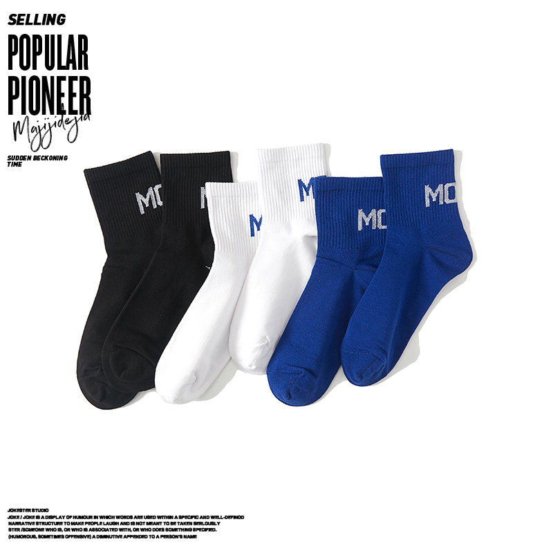 Tide brand mid-tube Klein blue socks men's mid-tube socks summer thin section personality blue short tube female ins tide sports