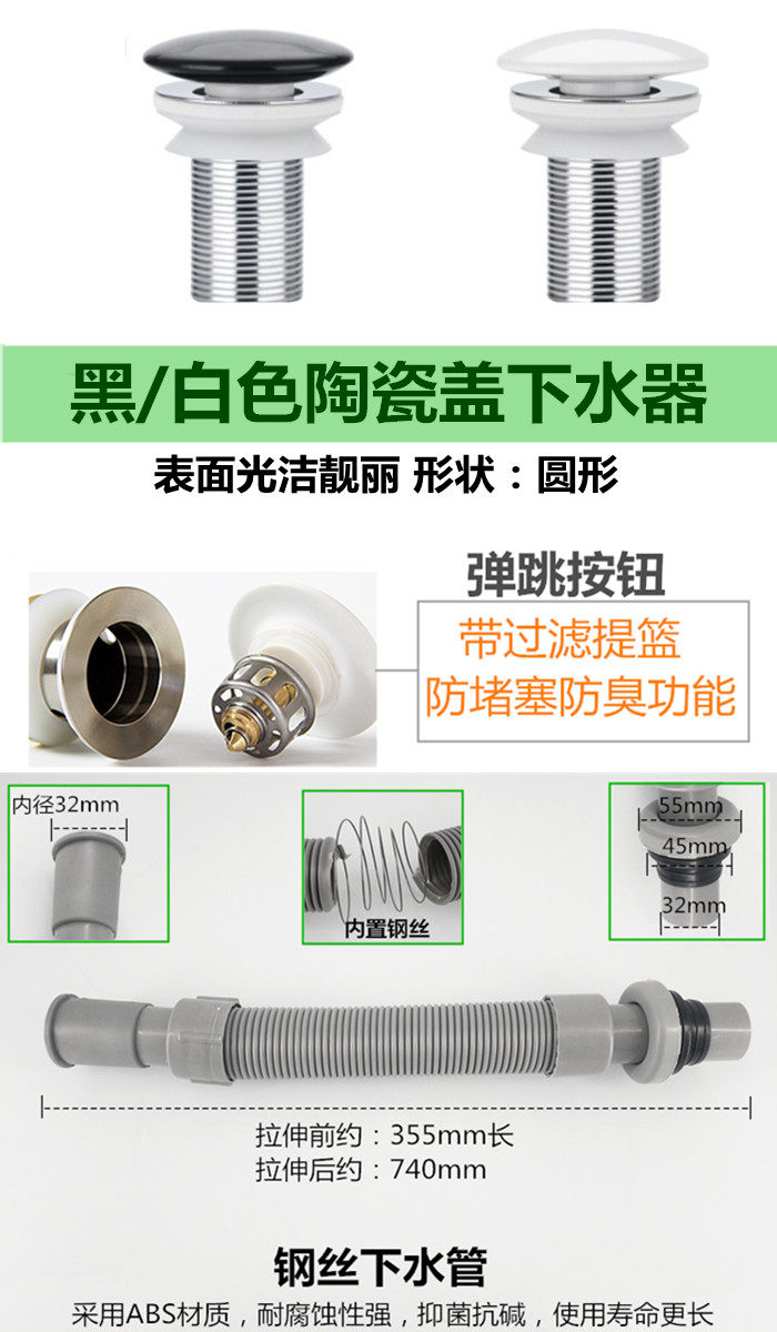 Black ceramic lid Lower water pipe (no spillway) Black ceramic lid Lower water pipe (with spillway) white ceramic lid Lower water pipe (no spillway) white ceramic lid Lower water pipe (with spillway)