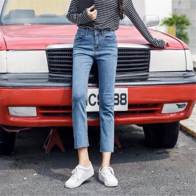 High Waist Jeans Women's Autumn 90% Pants Loose Slim Straight Drum Pants Schoolgirl Han Edition Slim 80% Wemblehorn Pants