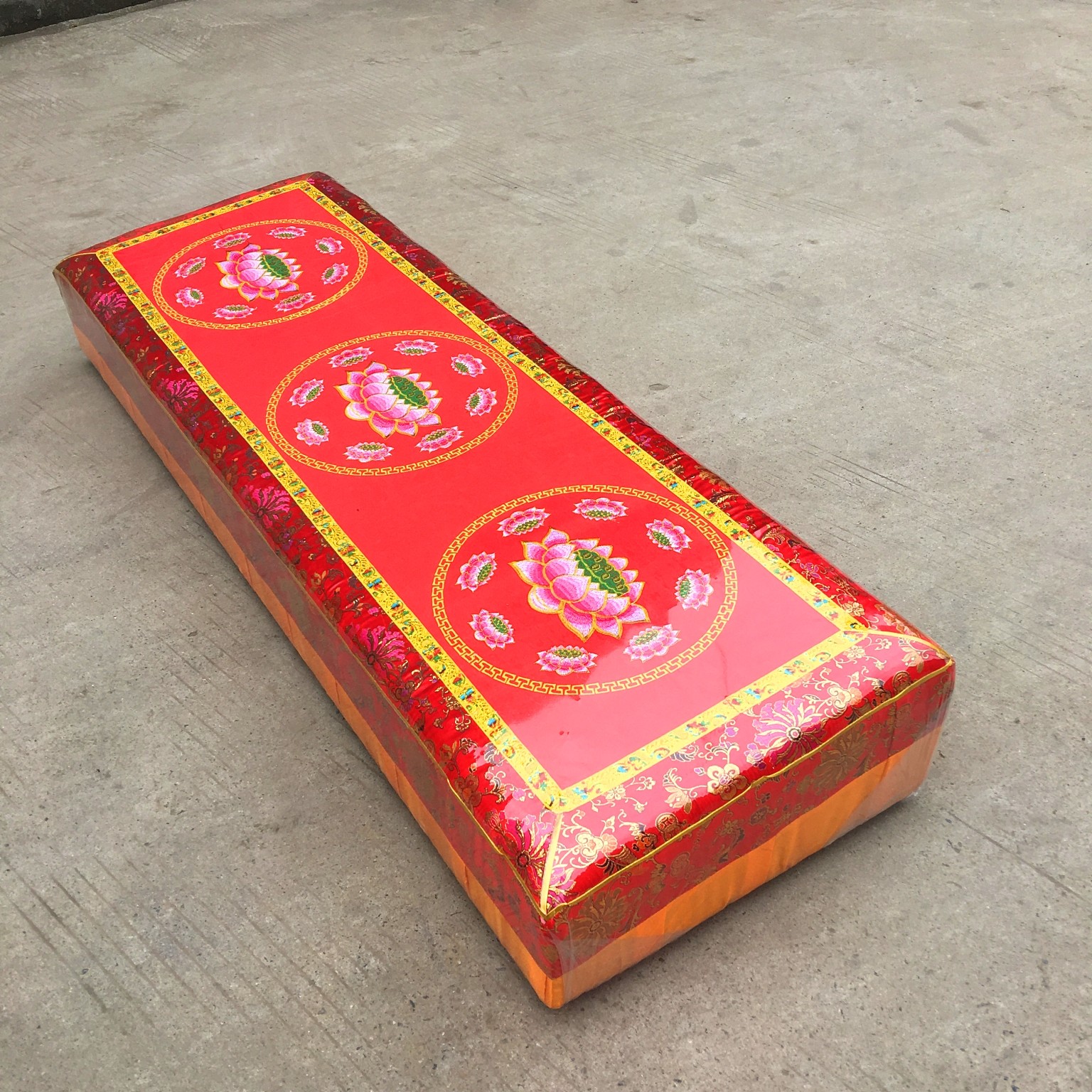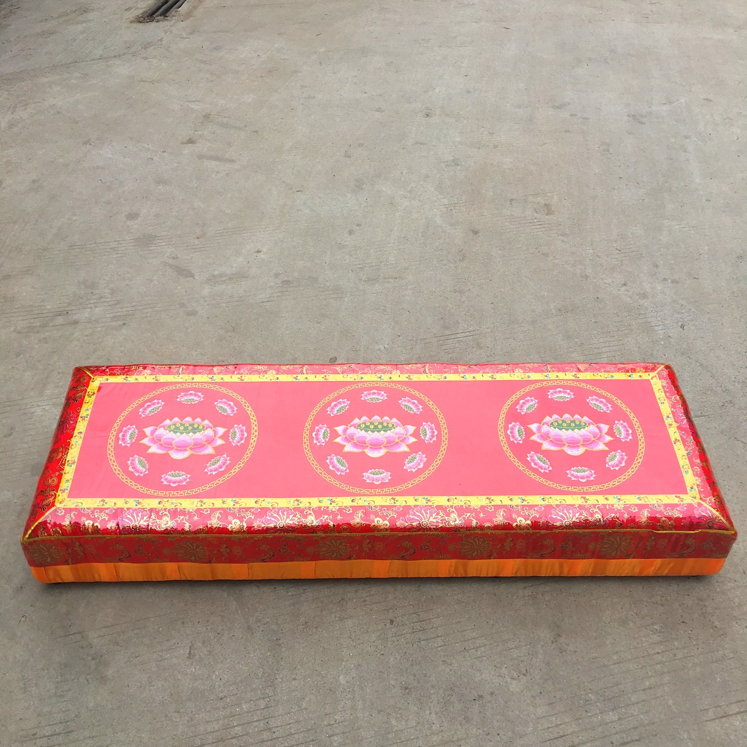 Buddhist three-person worship pad Lotus solid wood worship pad Lotus kneeling pad Worship stool Temple three-person worship pad