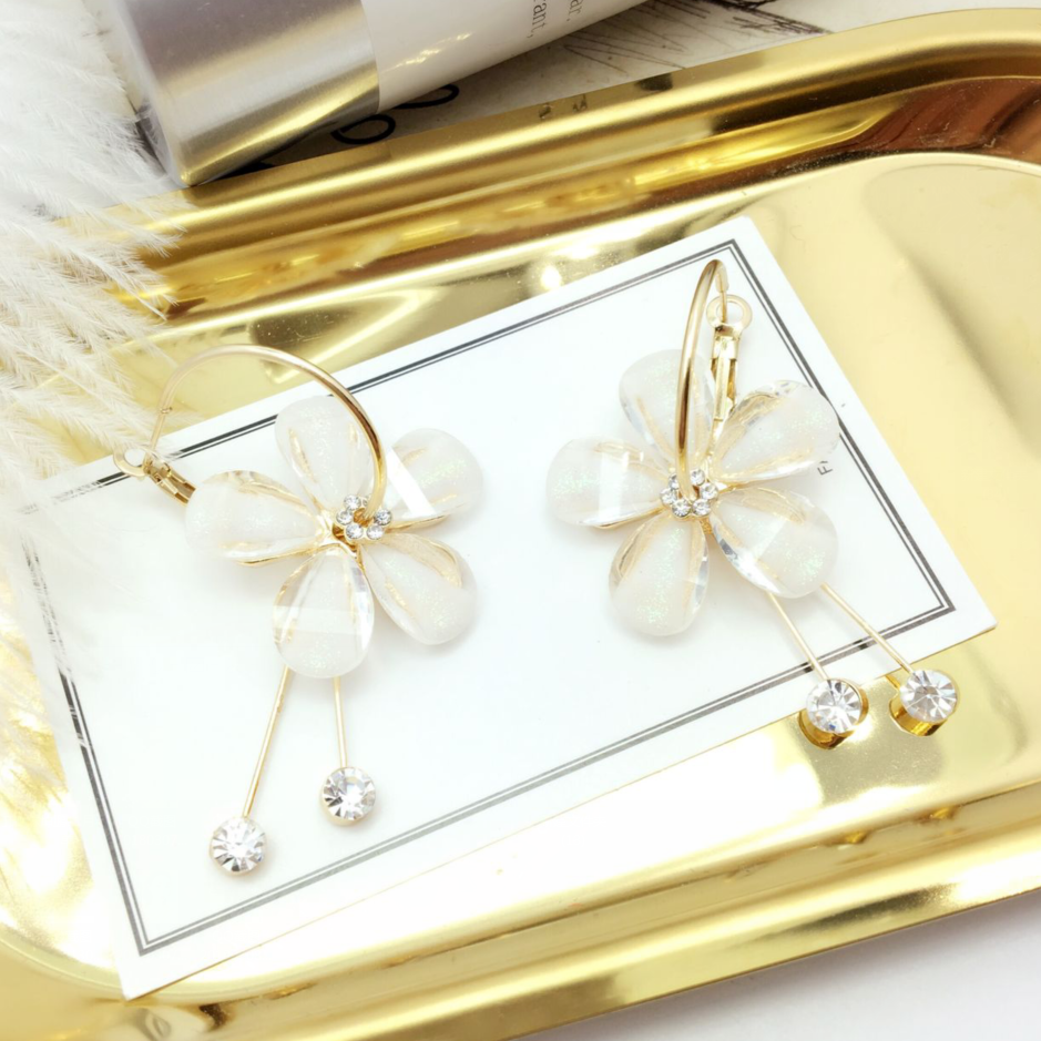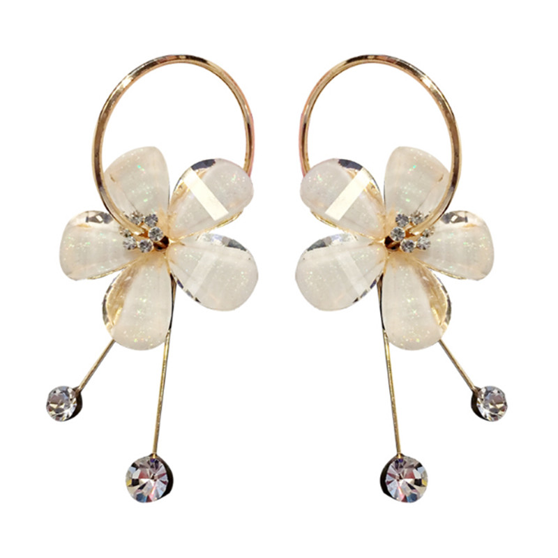 Lilac petal earrings Korean temperament long version exaggerated tassel earrings Super Fairy crystal flower earrings Korean version earrings