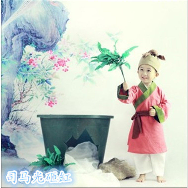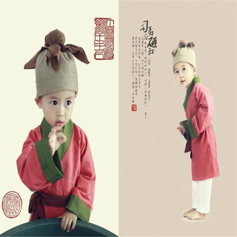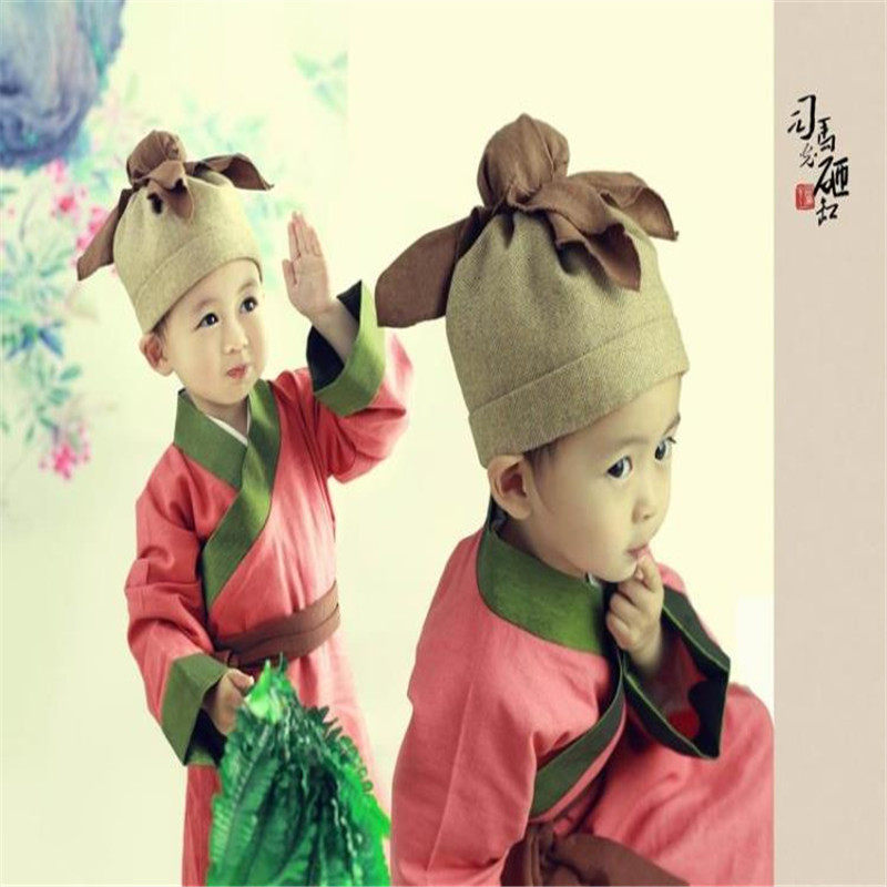 Boys and girls cotton and linen book children's performance costumes costumes Hanfu costumes children's Chinese learning hoes Sima Guang smashing cylinders