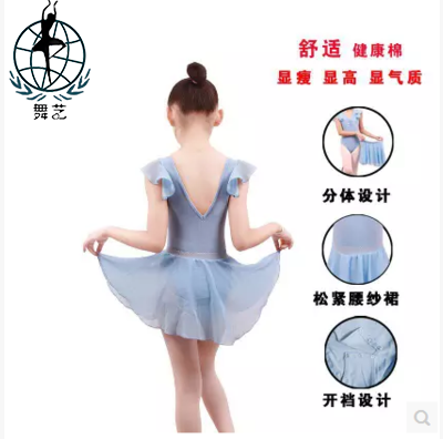 Dance Arts Spring Summer Ji Daughter Child practice Gongfu Young Children Open Crotch Short Sleeve Ballet Dresses Open Gear even Gymnastics Suit Pure Cotton
