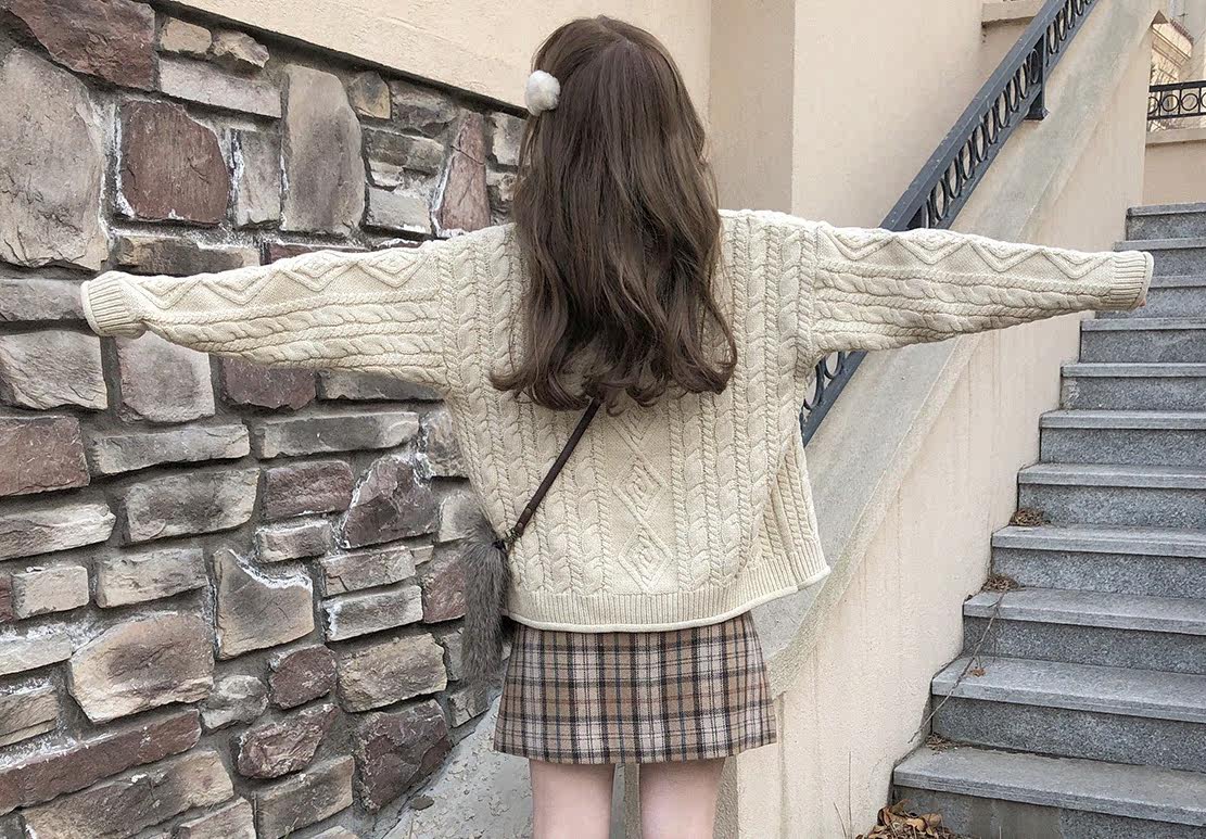 Original rhomboid hemp flower Forest Department ancient Sensation Curbside Retro Beige Knitwear Sweatshirt K