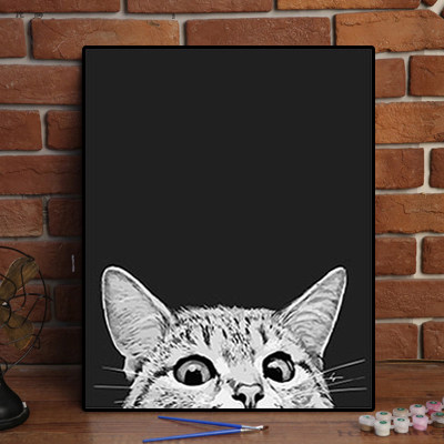 diy digital oil painting Children cartoon animal Cute cat Creative hand painted oil color decorative painting Peekaboo gift