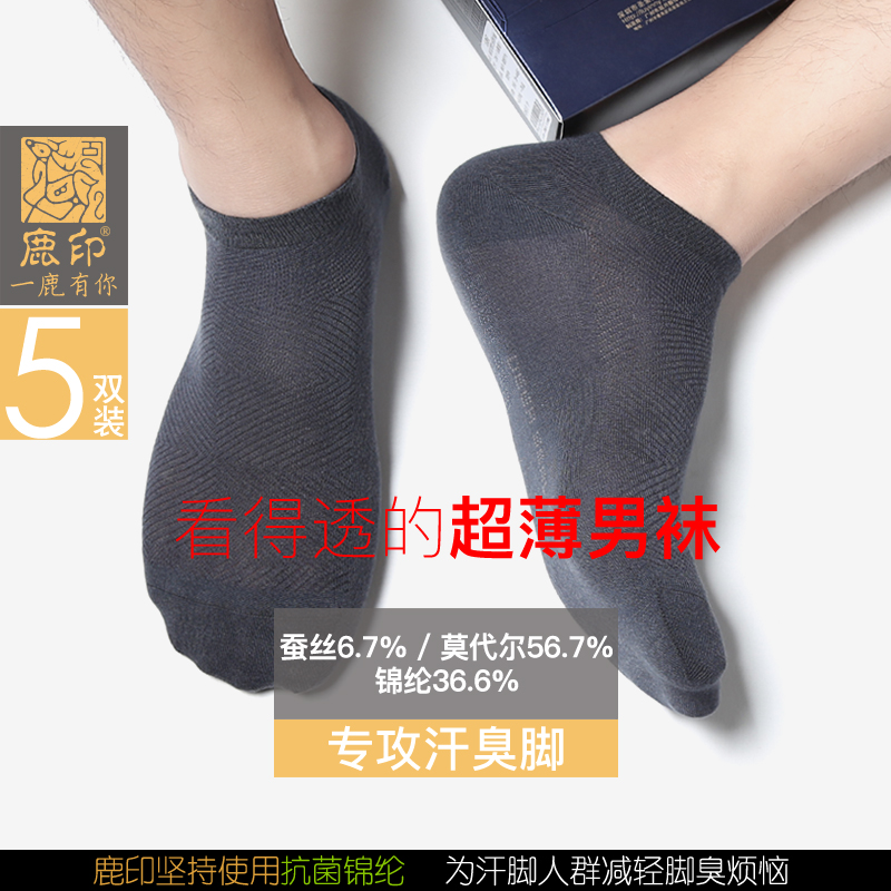 Deer print mulberry silk summer thin socks men's gift box deodorant socks ultra-thin summer modal men's boat socks