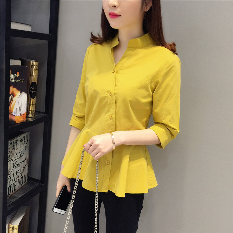 2022 Spring loaded with new Korean version Snow spinning shirt fairy Fan Heart Machine design Sensation Little Crowdblouse Foreign Pie White Shirt