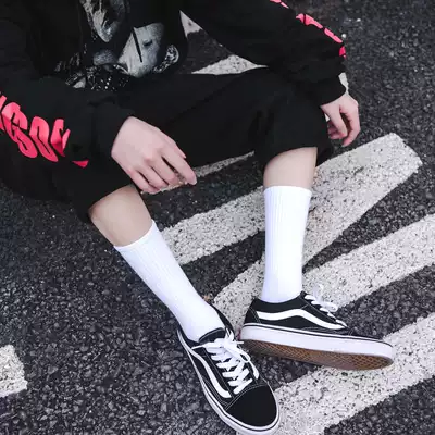 Black and white socks men's and women's socks cotton socks men's stockings ins Tide Street high socks towel bottom sports basketball socks