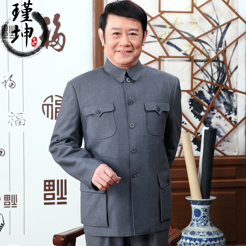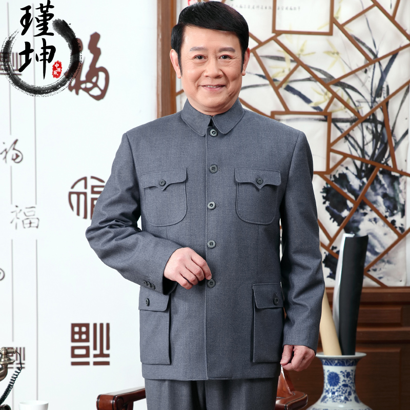 Jin Kun Middle Aged Zhongshan Clothing Suit Loose Zhongshan Fashion Dad Spring and Autumn Fashion Men's Chinese Collar Grandfather Clothing