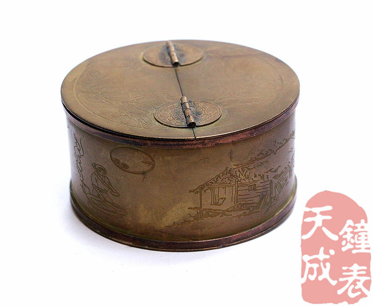 Pure Copper Smoke Paste Case Round Jars Tobacco Box retro text Play Pendulum Piece Craft Gift collection Film and TV props
