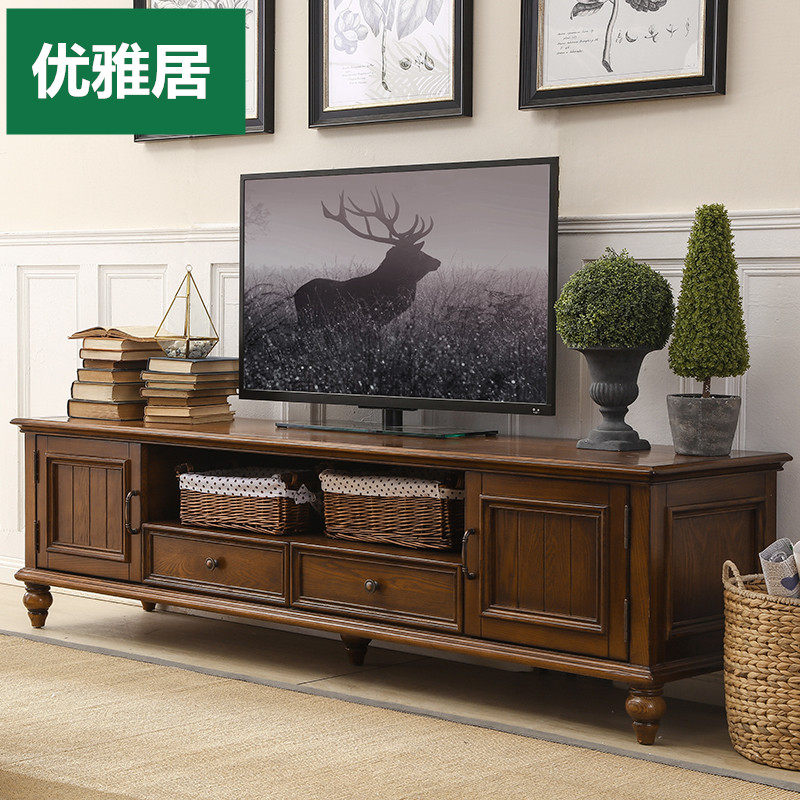 American solid wood TV cabinet tea table combination living room small family type ground cabinet tea table combined wall accommodating cabinet TV cabinet