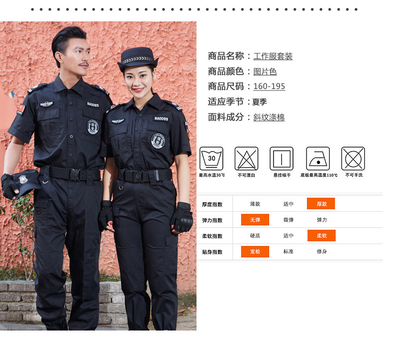 Summer black training uniforms, training uniforms, uniforms, training men's suits, short-sleeved security uniforms