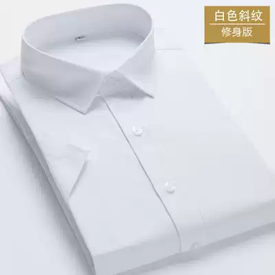 Short sleeve shirt men's summer half sleeve Korean slim solid color business tooling professional dress shirt white inch shirt