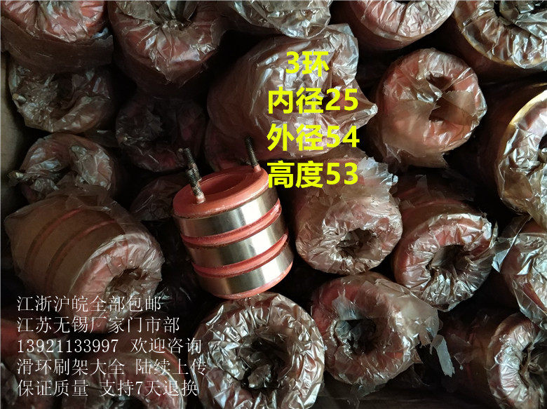 High-quality 3-way collector ring inner diameter 25 outer diameter 54 height 53 conductive slip ring 3 ring with 6X12 copper brush frame without keyway