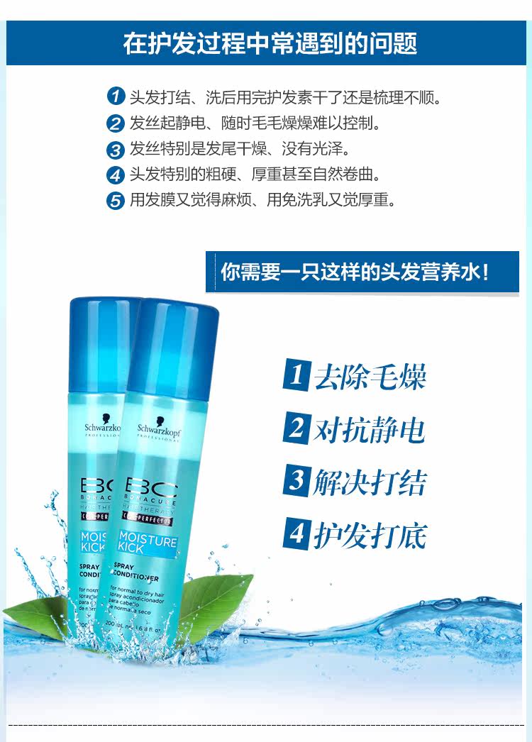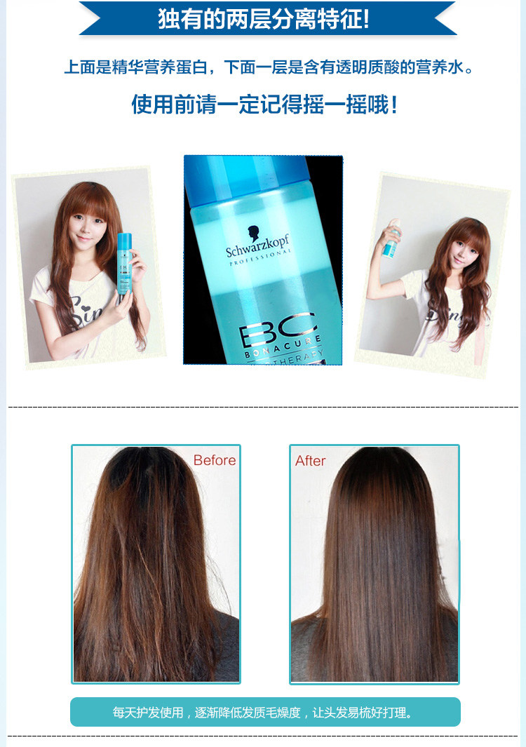 Schwarzkopf hair moisturizing nutrient solution leave-in spray conditioner dry anti-frizz repair straight curly hair nutrient water