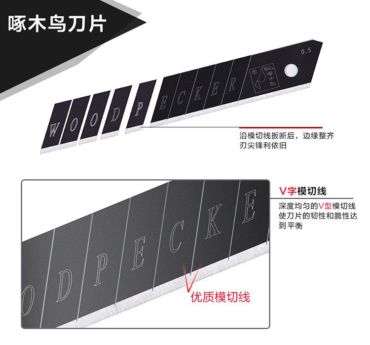 Woodpecker Beauty Knife Sheet Large Number 18mm Thickened 0 5 Wall Paper Cut Paper Knife Sheet Industrial Multipurpose Multifunction
