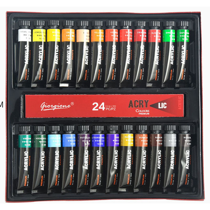 12 colors 24 colors Acrylic paint painting DIY boxed waterproof stone painting paint Aluminum tube painting Yanyan Mei stone