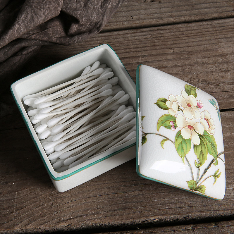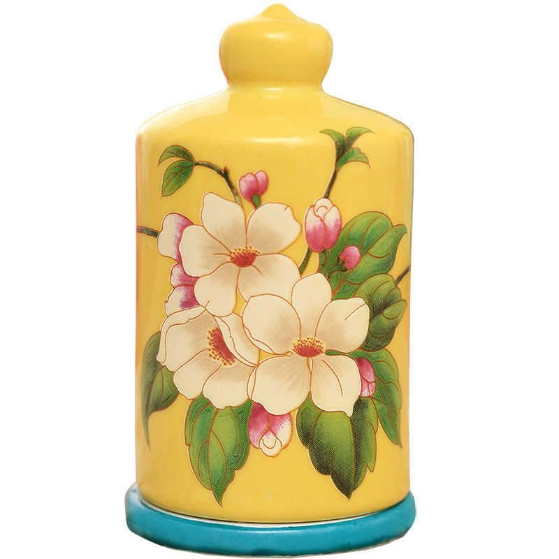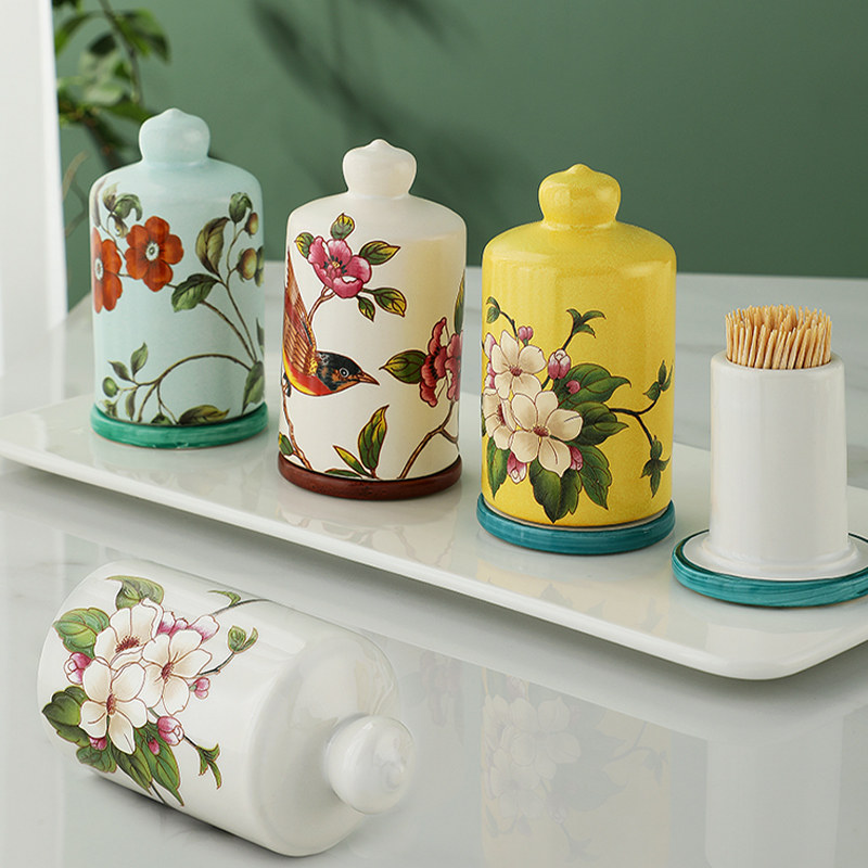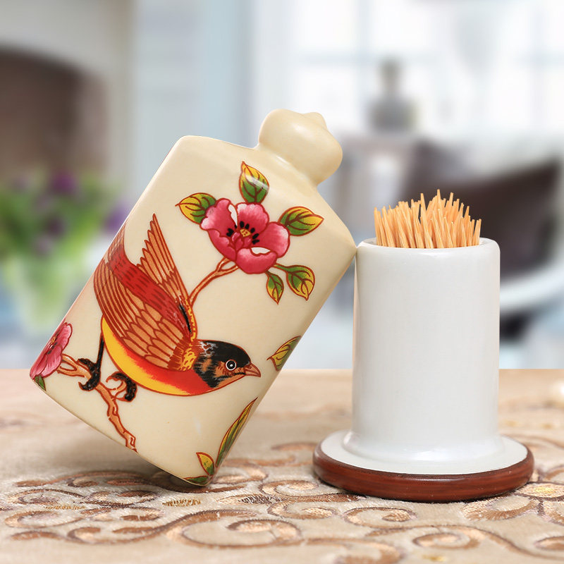 American creative ceramic toothpick container home Chinese flower and bird toothpick box storage living room dining room fashion toothpick jar