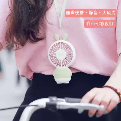 USB handheld small electric fan Big wind mini rechargeable portable student dormitory office desktop hand-held cartoon cute portable cooling children's hanging neck household silent small fan