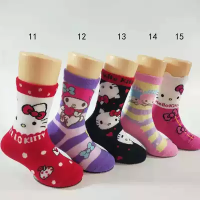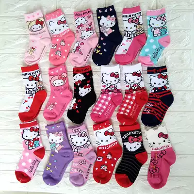 3 pairs of cute cartoon girls socks children pure cotton socks kitmiddot yKitty Meow tube 5-6-7-8-9 years old