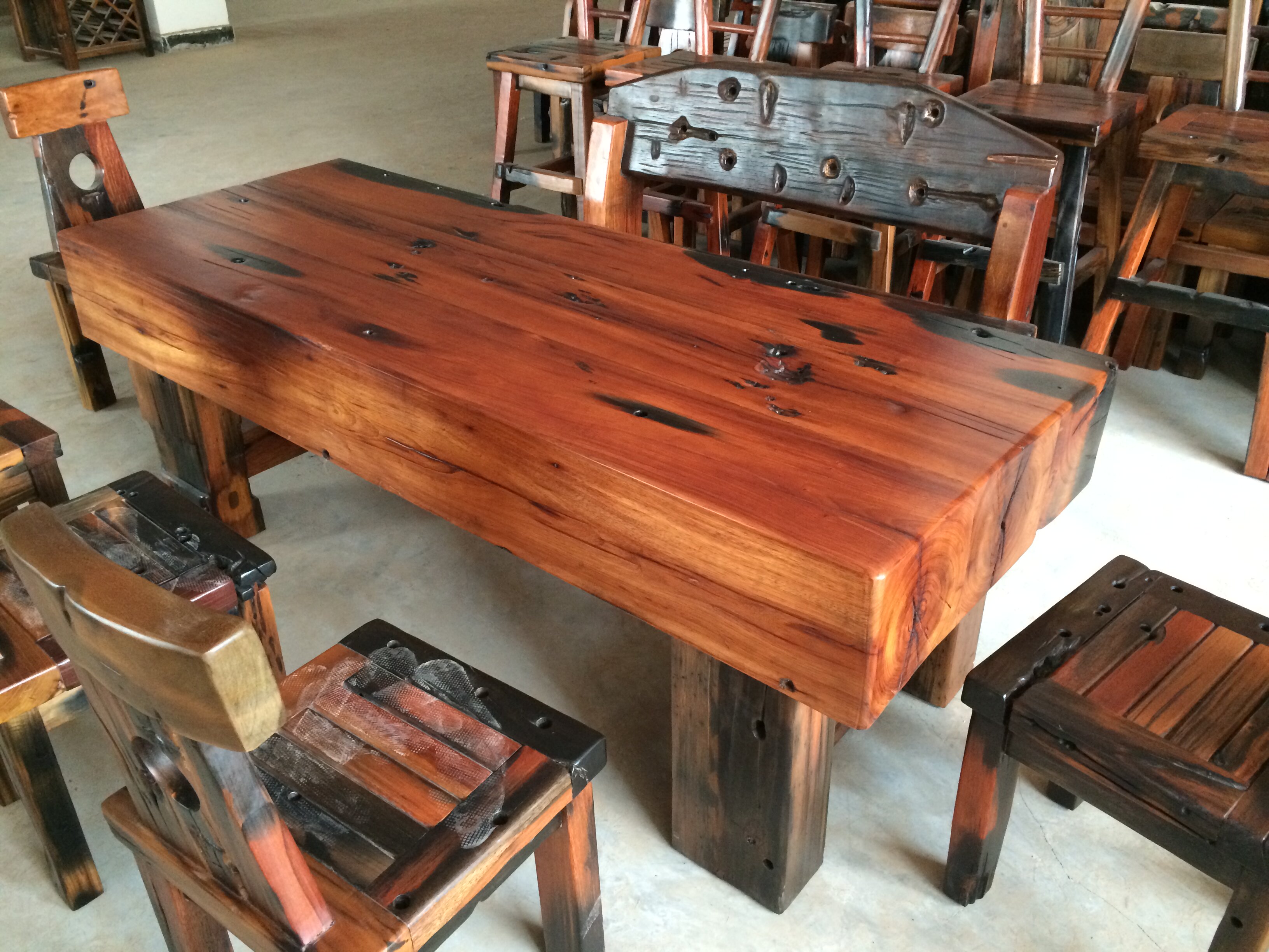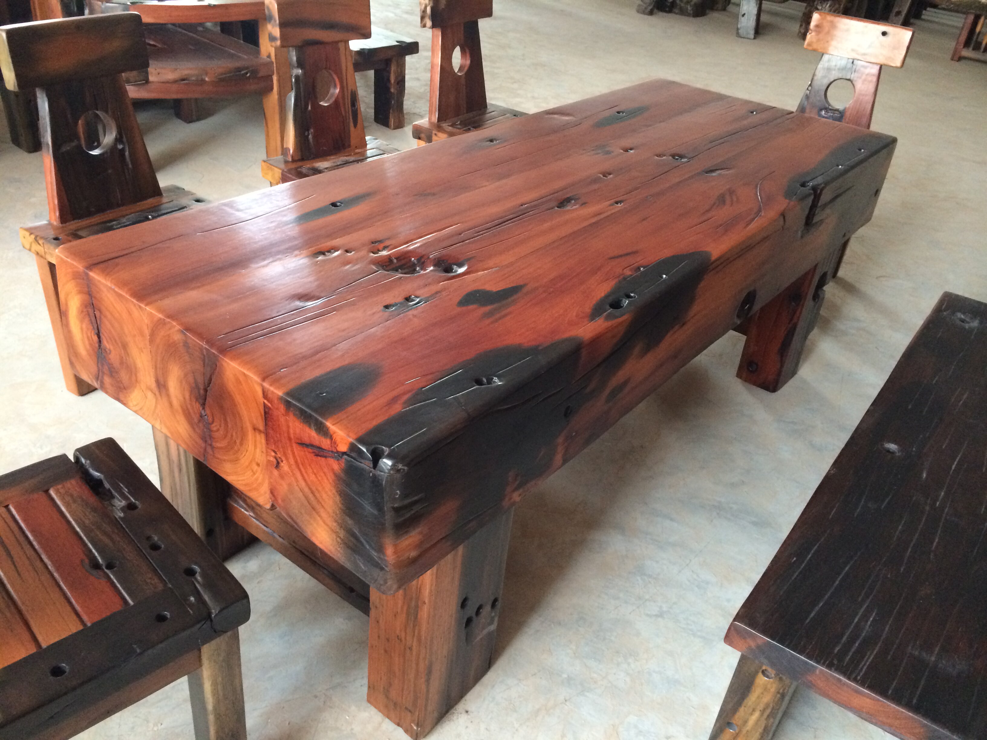 Old boat wood keel large plate table retro kungfu tea table tea table chair combined machine pillow wood tea table tea table thick solid wood