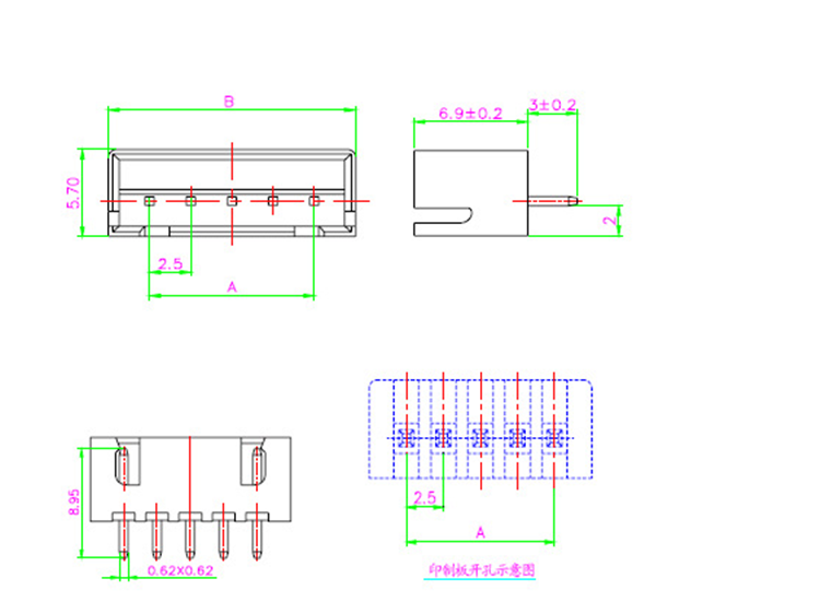 XH2 54MM pitch STRAIGHT needle holder Curved needle holder socket connector terminal 2P3P4P5P6P7P8P straight needle curved needle