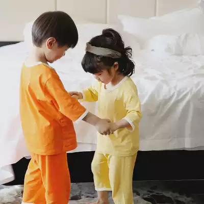 Children's pajamas summer boys and girls home clothing set cotton thin small children Air conditioning clothing short sleeve children's clothing summer clothing Korean