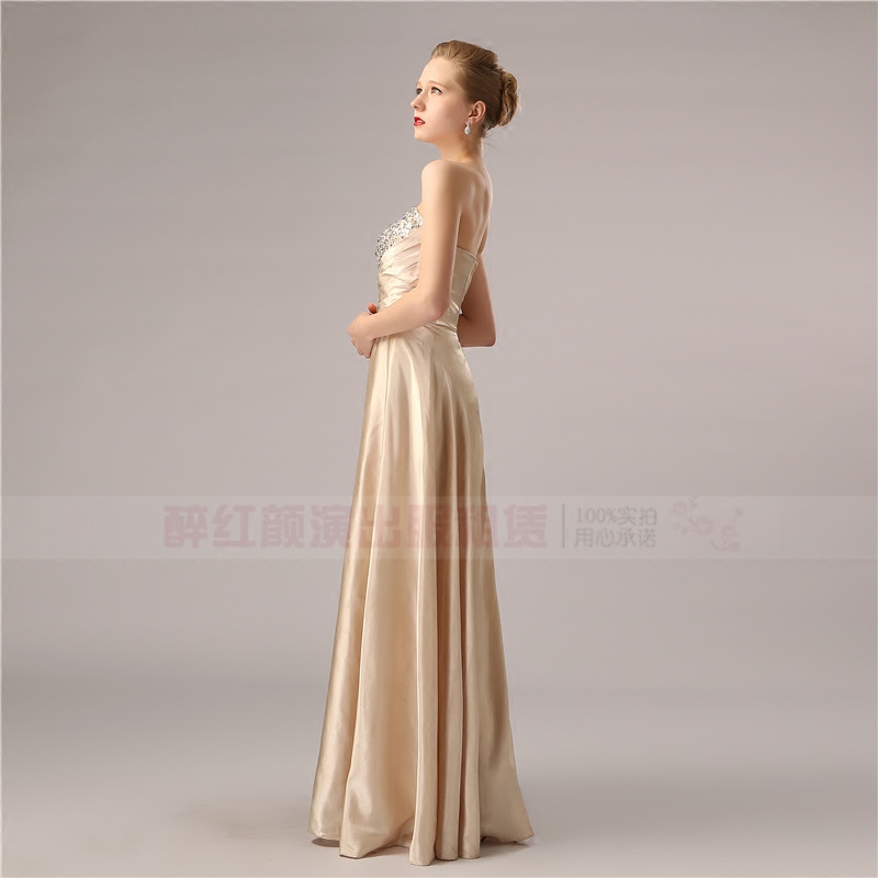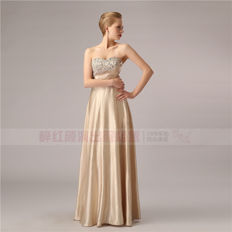 (Rental) Long version of champagne color performance dress model car show temperament sexy host gift Miss Yi rental