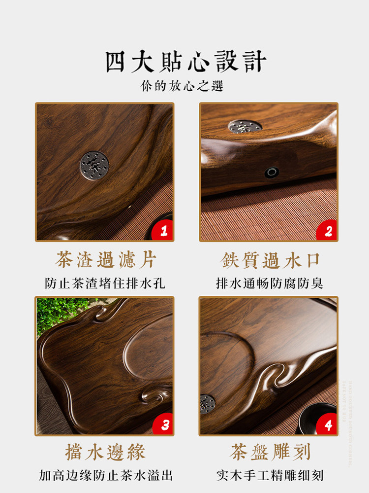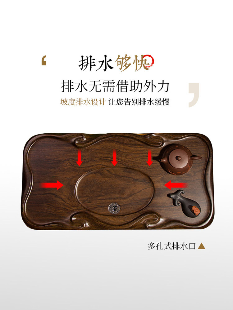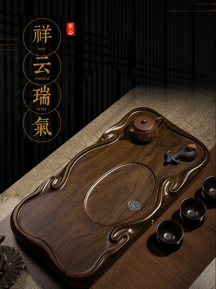 Ebony wood tea tray whole piece of solid wood household kung fu tea set log tea tray rectangular simple small tea tray