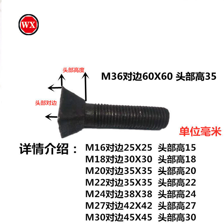 4 8 class bucket type screw ball mill screw lining plate screw bucket type bolt inclined square head bolt square head