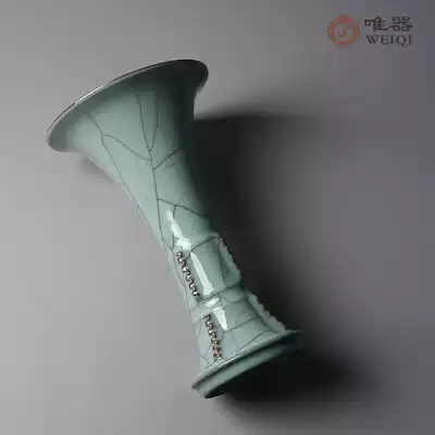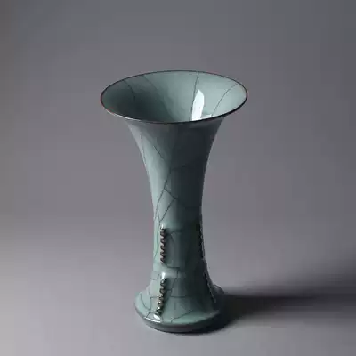 Longquan celadon famous teacher Ji Dong all handmade flower countertop flower set flower vase Geyao iron tire gold wire wire