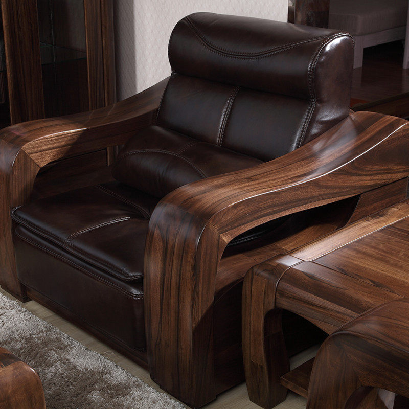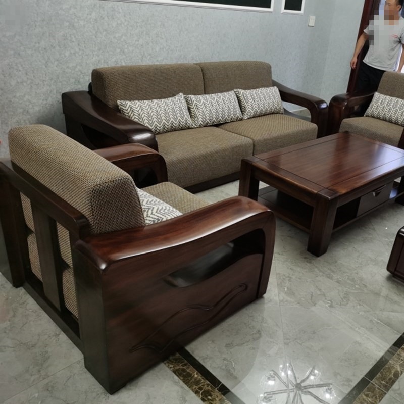 New Chinese style 123 combination simple modern living room furniture leather fabric all solid wood gold wire black walnut sofa