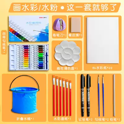 Del watercolor gouache paint set beginner 24 color 12 color primary school students with children non-toxic washable kindergarten palette art students special painting painting color tools Professional