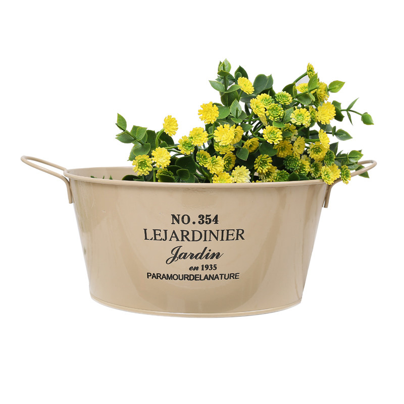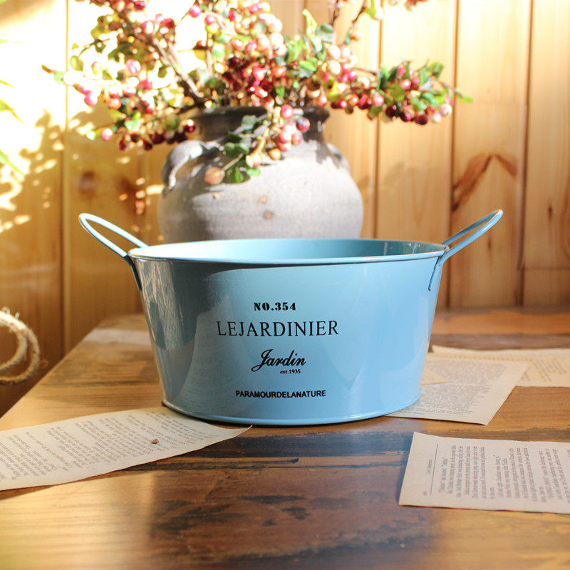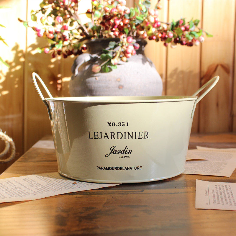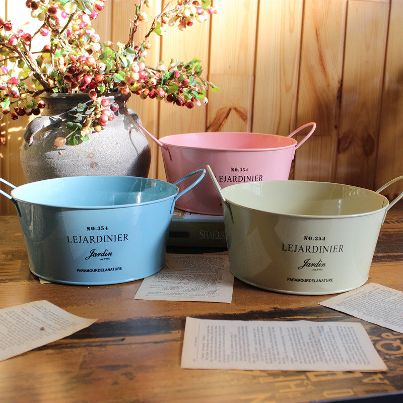 Pastoral tin flower pot Creative dining room desktop fruit basin storage trash can Living room fleshy flower pot Golden Ge flower bucket