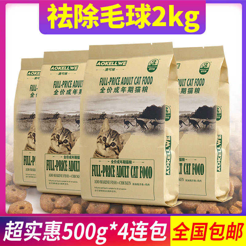 Aokewei fresh marine fish chicken into cat food beauty hair hair removal ball 2kg healthy teeth picking mouth 500g*4 packs are cost-effective