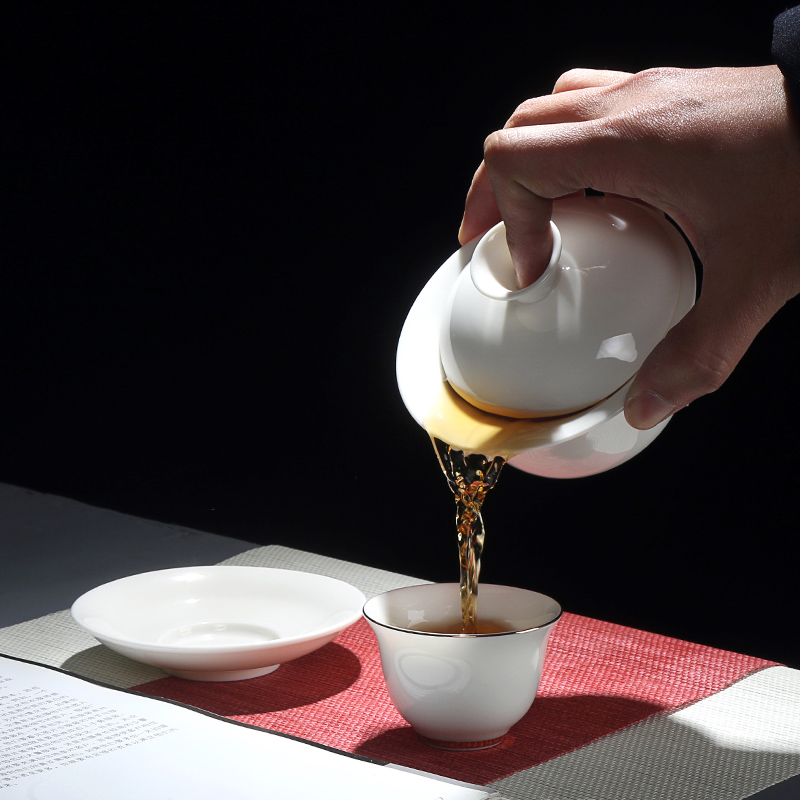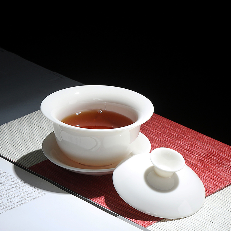 150ml 8g Sancai tea bowl cover bowl ceramic kung fu tea set tea cup tea handmade cover bowl Dehua white porcelain