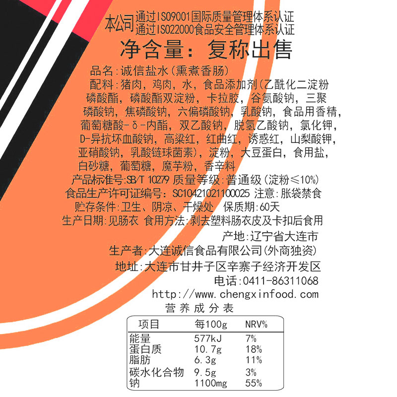 (Integrity flagship store)Integrity salt sausage 1kg Dalian specialty ready-to-eat sliced breakfast sausage packaged ham