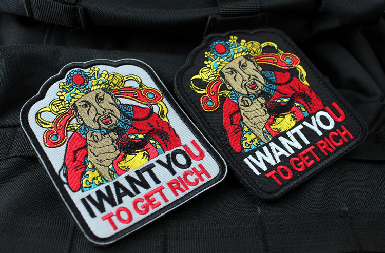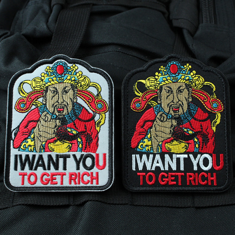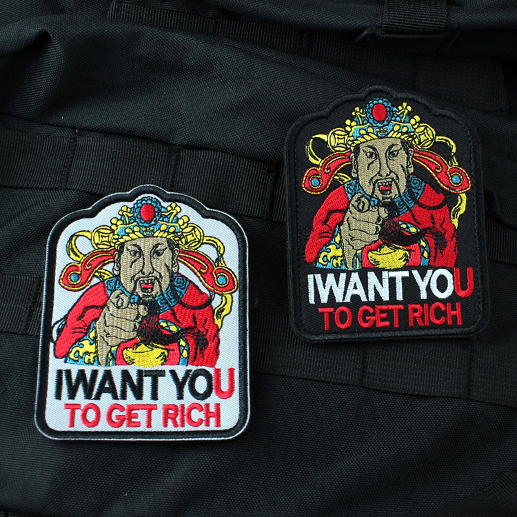 God of Wealth Embroidery Velcro Band Armband Outdoor Personality Magic Paste Seal Hat Paste I Want You to Be Rich Backpack Paste