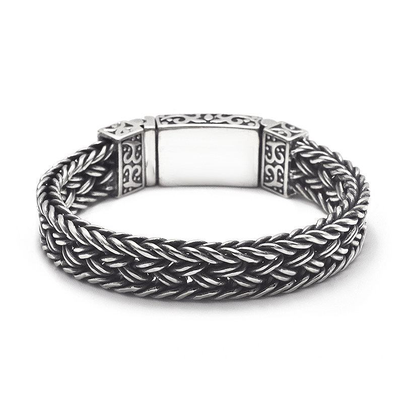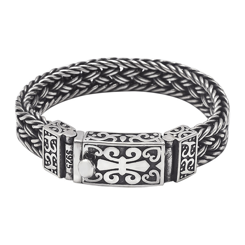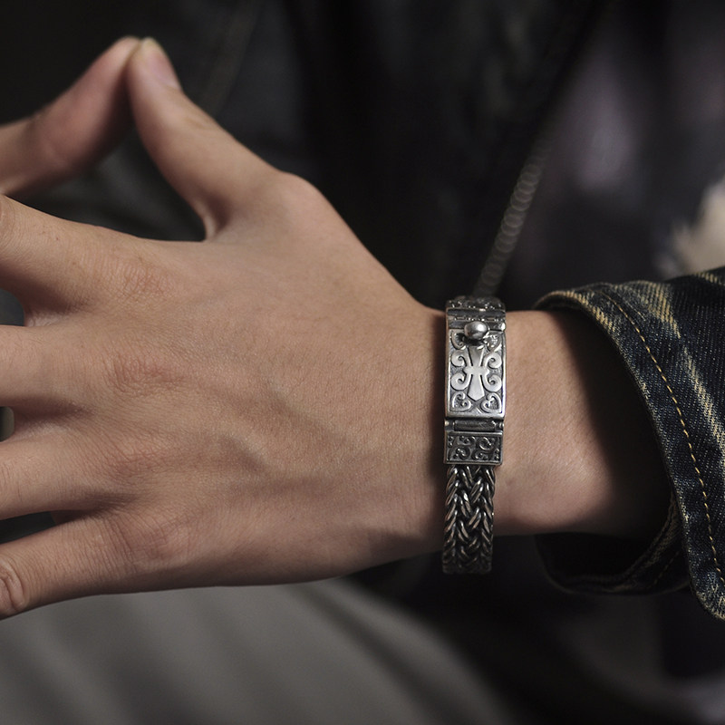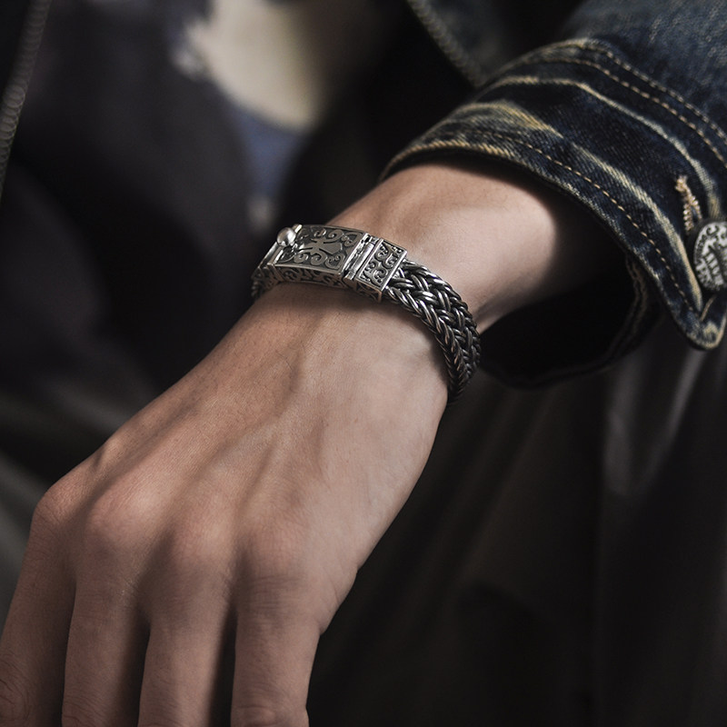 S925 sterling silver vintage Thai silver men's bracelet personality Thai keel tide men domineering woven coarse lettering bracelet