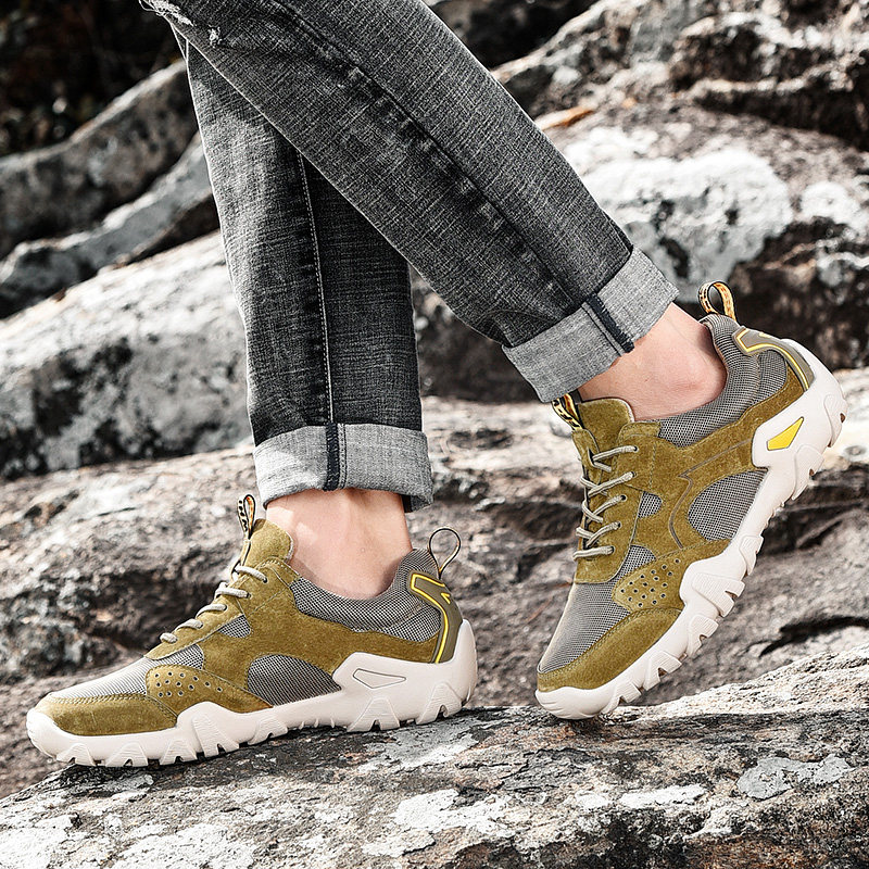 Fishing shoes non-slip waterproof men's rock fishing shoes deodorant breathable wear-resistant outdoor hiking hiking shoes leather low-top shoes