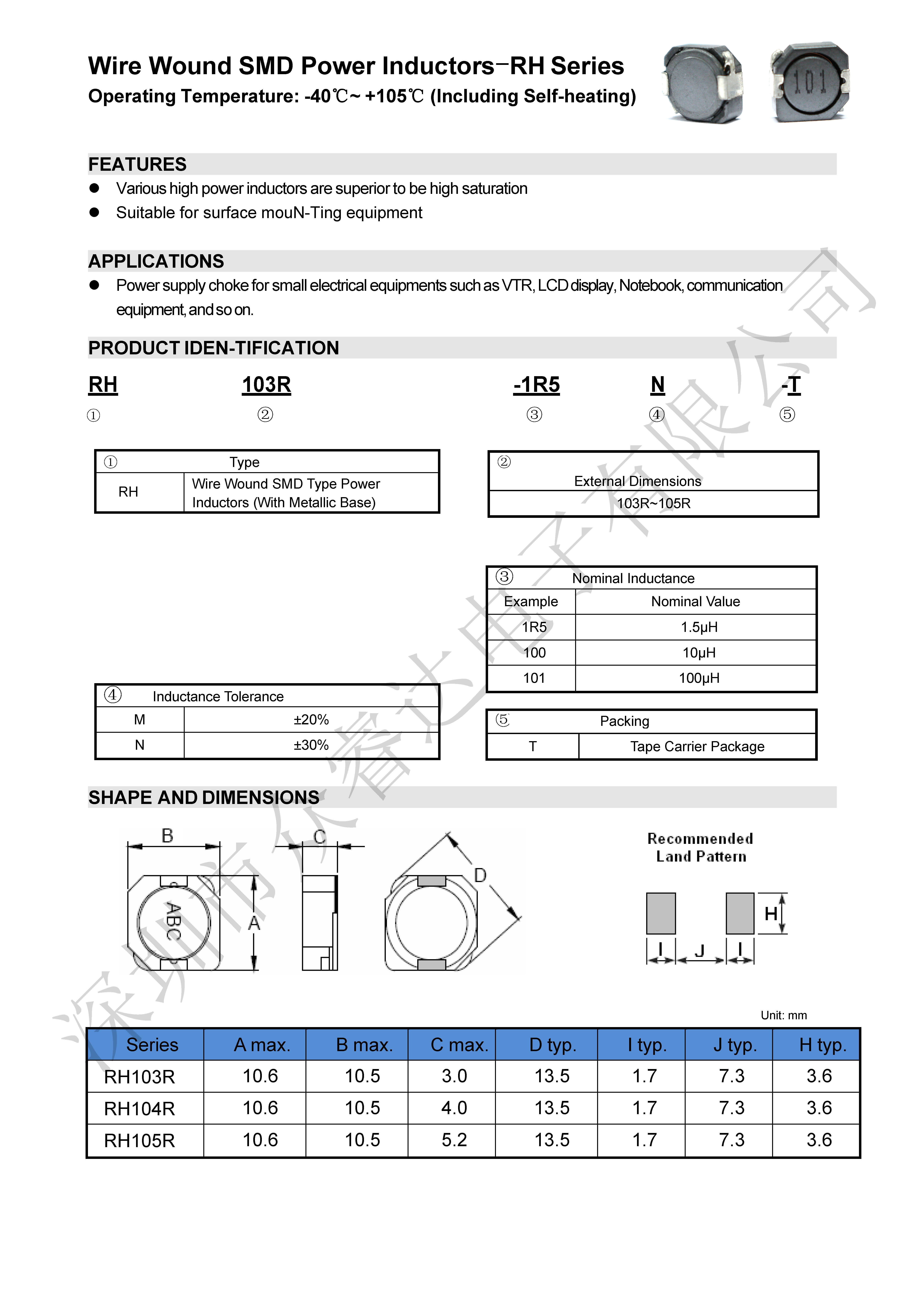 SMD inductor RH105R 330UH printing 331 10*10*5MM high temperature resistant shielding power inductor