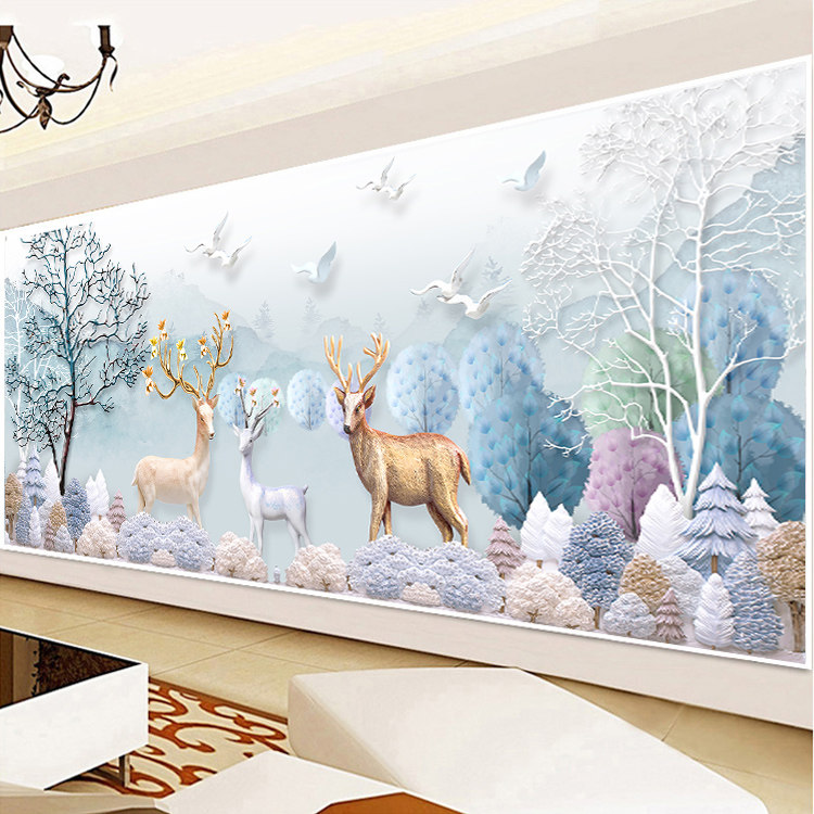 2021 thread embroidery new cross-stitch living room simple modern large-scale atmospheric cross-stitch fortune deer self-embroidery handmade