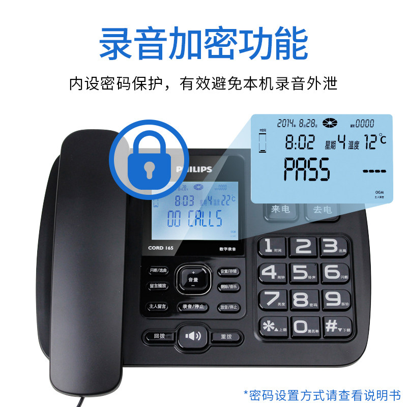 Philips CORD165 automatic recording telephone landline office answering fixed seat machine free 16g card