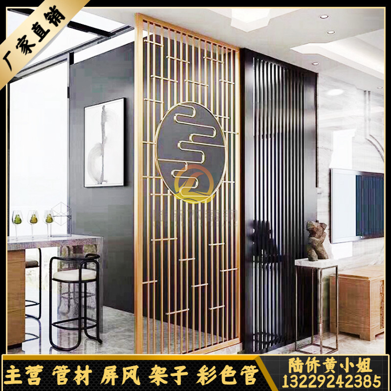 Customized rose gold stainless steel screen partition without fingerprint Chinese living room hollow carved metal black titanium gold