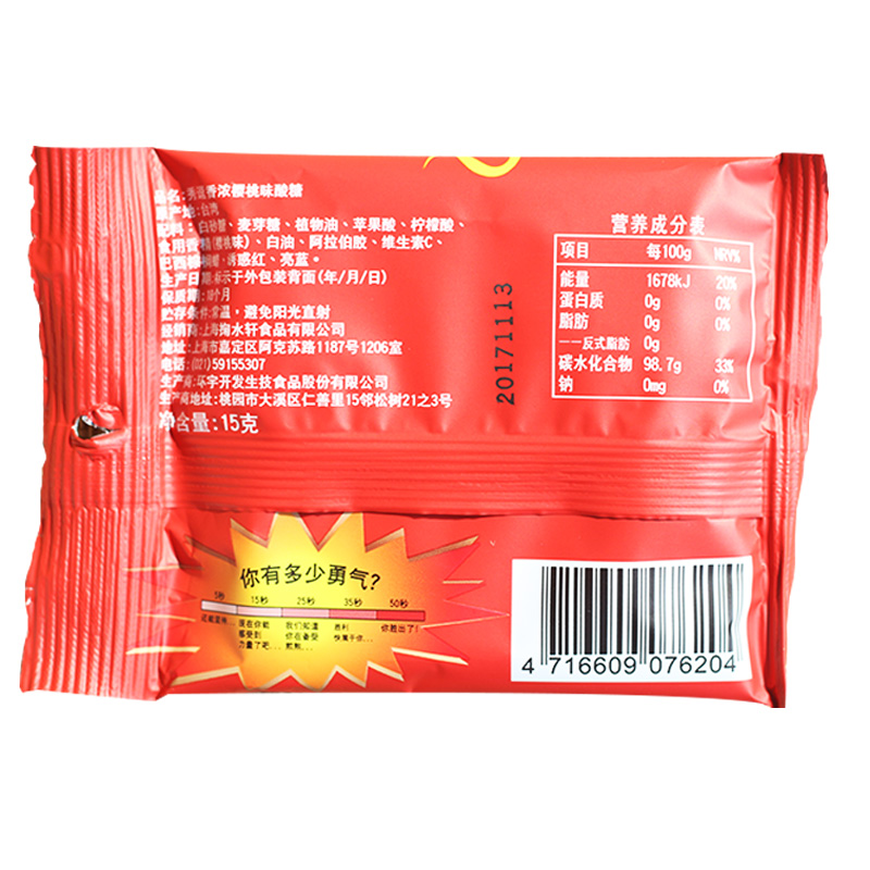 Of granulated sugar and sticky rice starch maltose vegetable oil malic acid citric acid flavor asphalt gum Arabic VITAMIN B and VITAMIN C