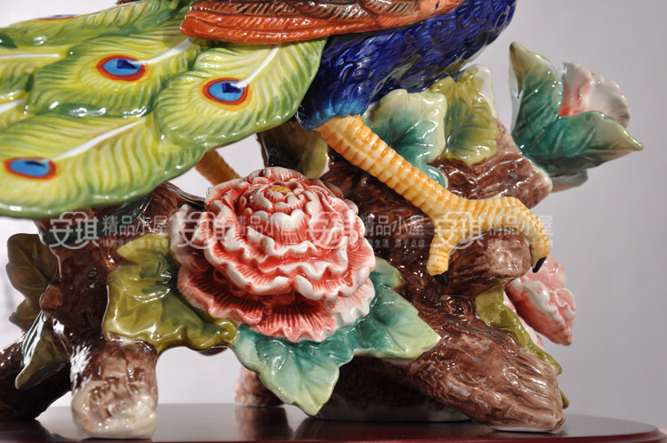 Fangya auspicious big peacock screen ceramic decoration housewarming jewelry wedding engagement newly married TV cabinet wine cabinet decoration